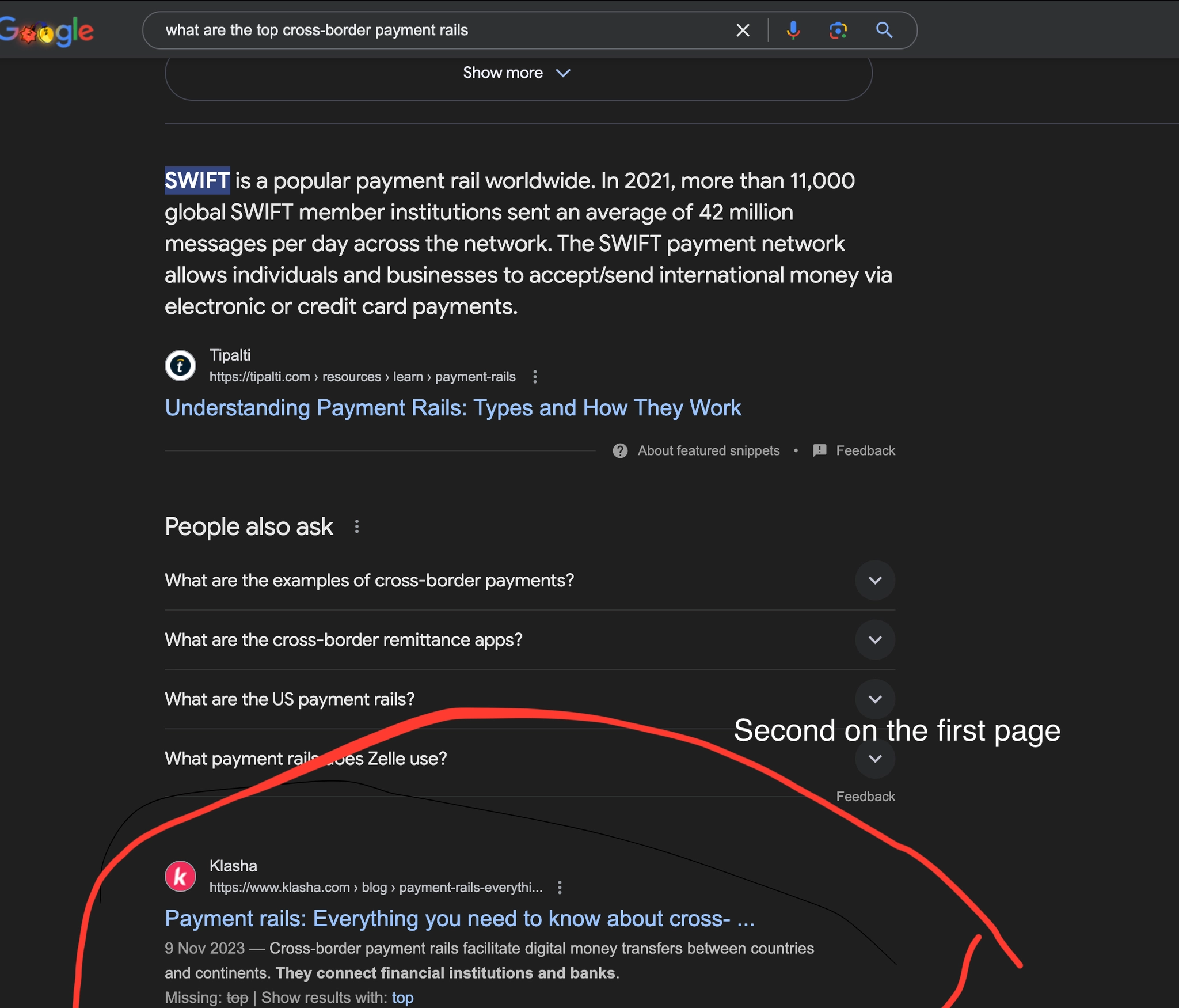 Achieved first page rankings for key B2B payment terms.