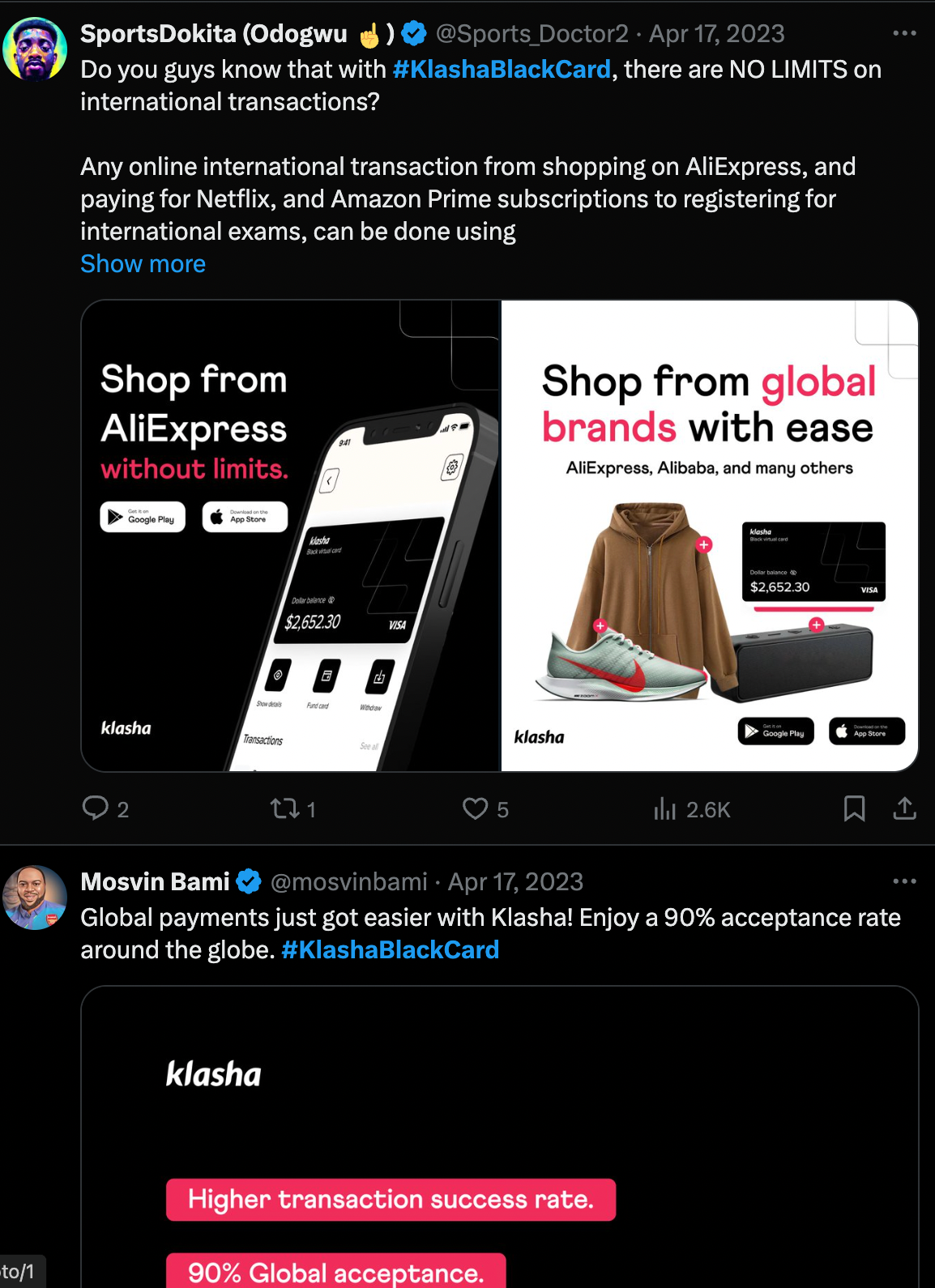 Collaborated with 40 micro-influencers to promote #KlashaBlackCard on Twitter.